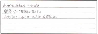 相談後もこまやかに対応してくださって、本当にありがとうございます。
